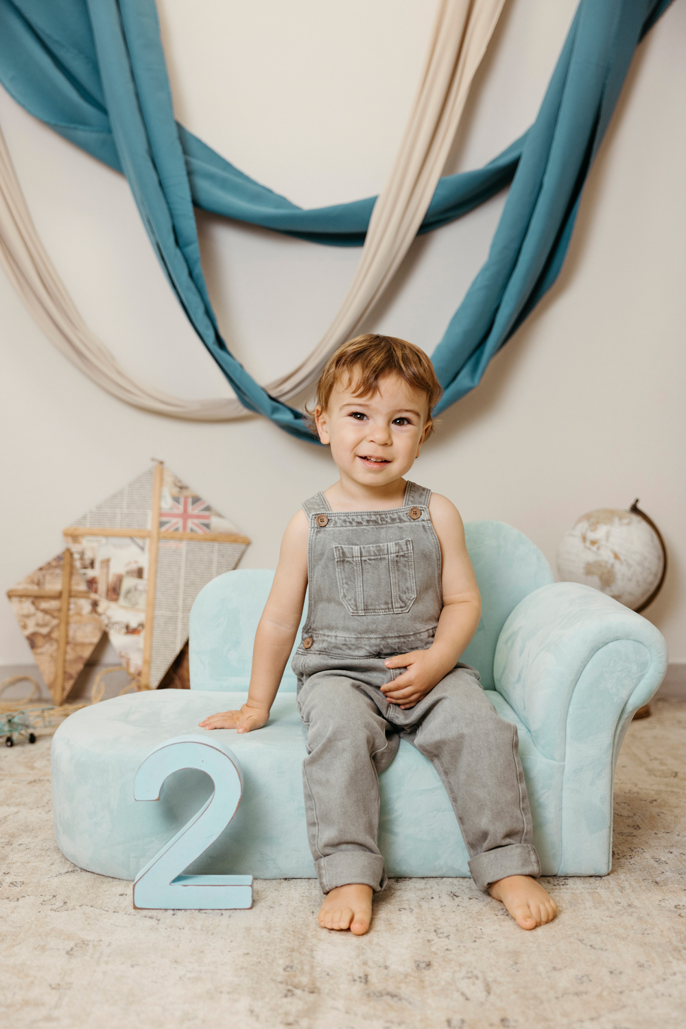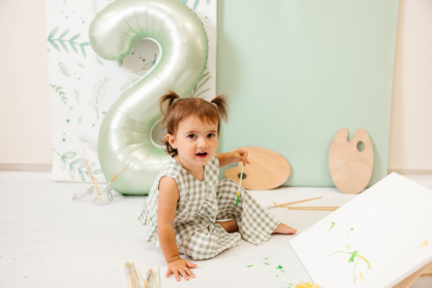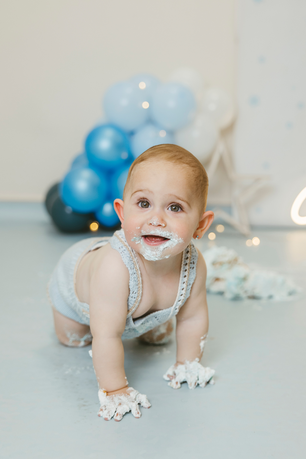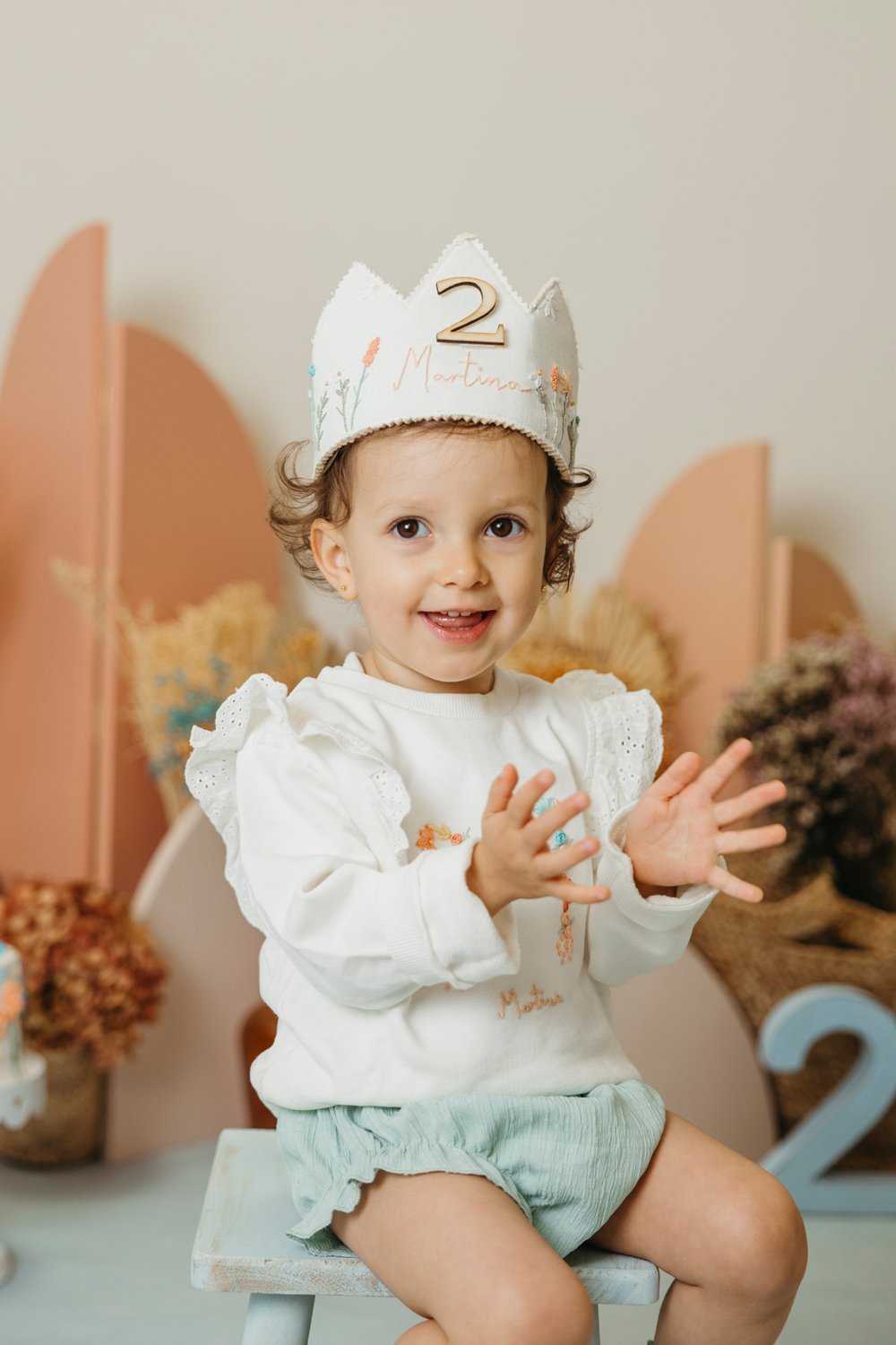 Cada escenario se monta a medida, en conjunto con la ropa de cumpleaños que traigáis. Los colores y la temática se eligen siempre dentro del estilo de fotos que realizo, para que cada imagen refleje vuestra esencia, sea personalizado pero coherente con mi forma de trabajar.