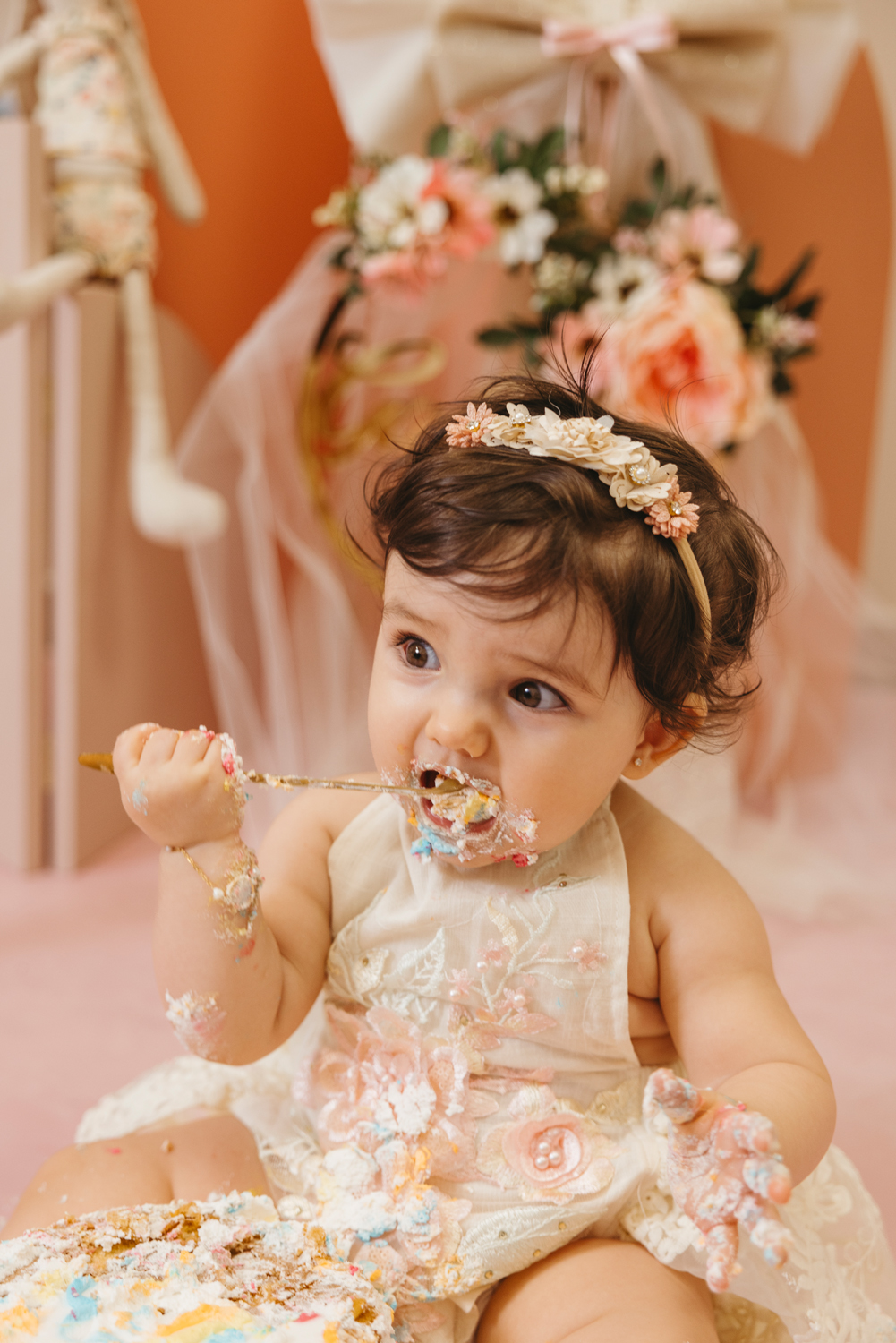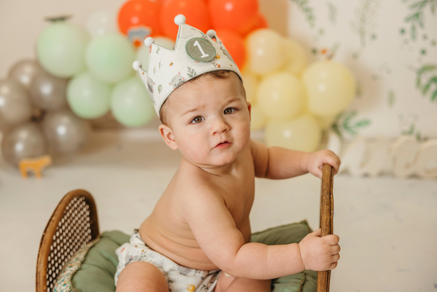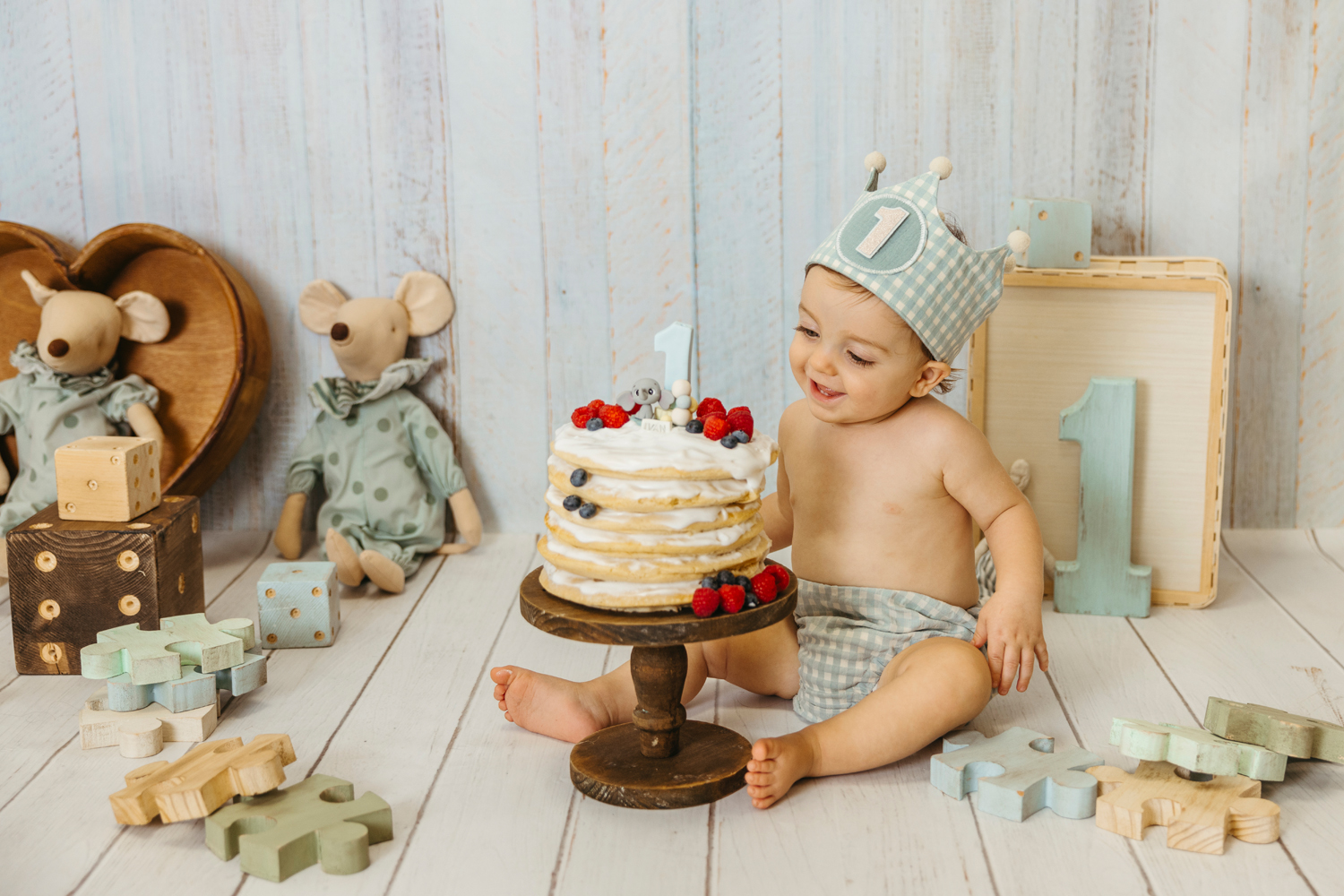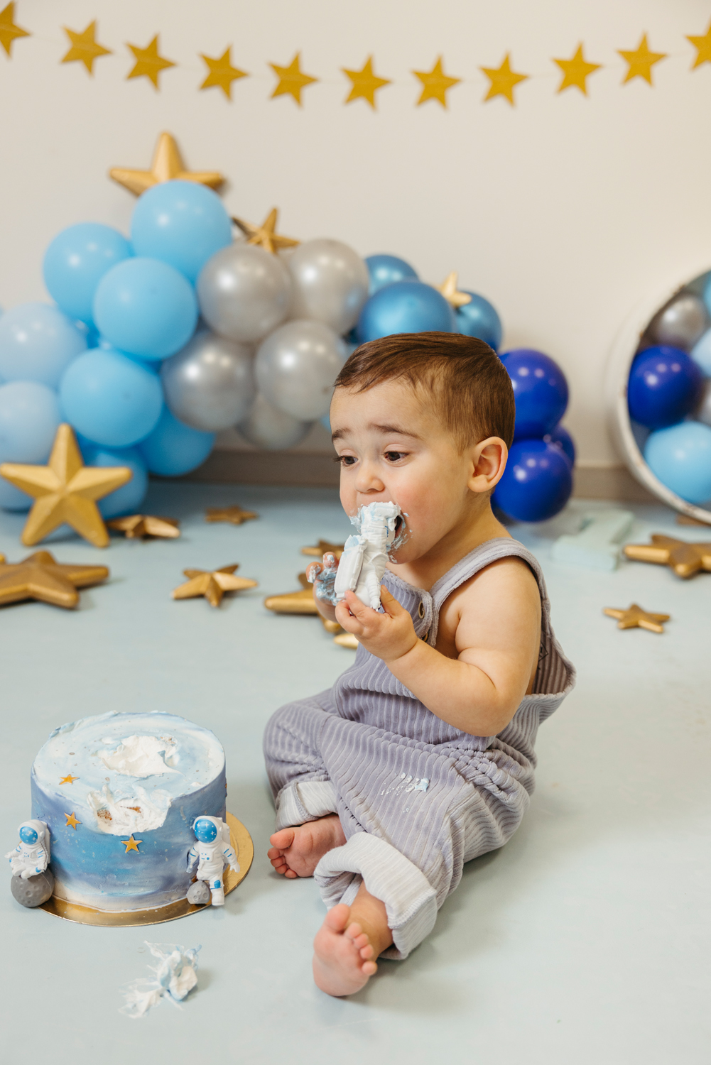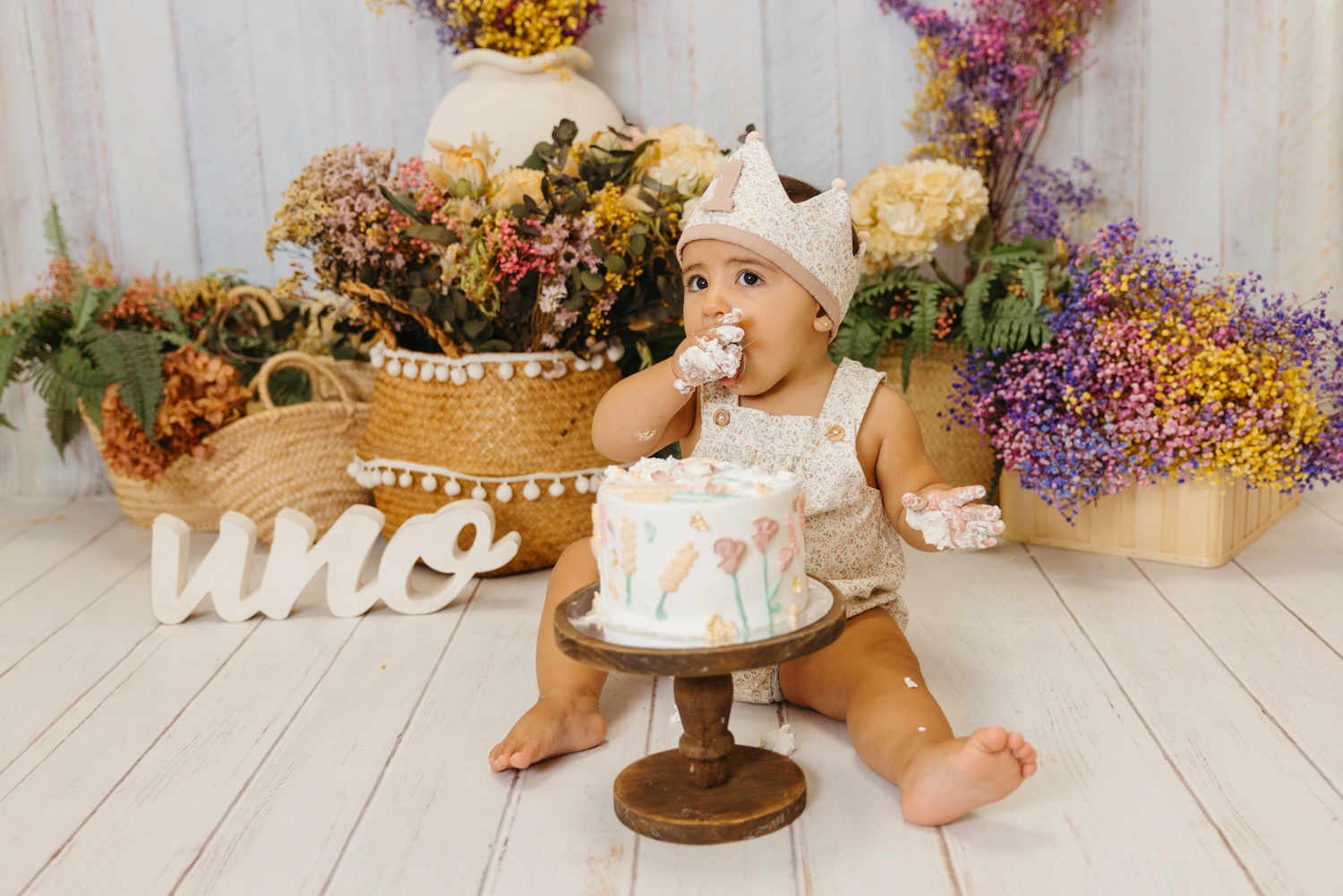 Cada escenario se monta a medida, en conjunto con la ropa de cumpleaños que traigáis. Los colores y la temática se eligen siempre dentro del estilo de fotos que realizo, para que cada imagen refleje vuestra esencia, sea personalizado pero coherente con mi forma de trabajar.